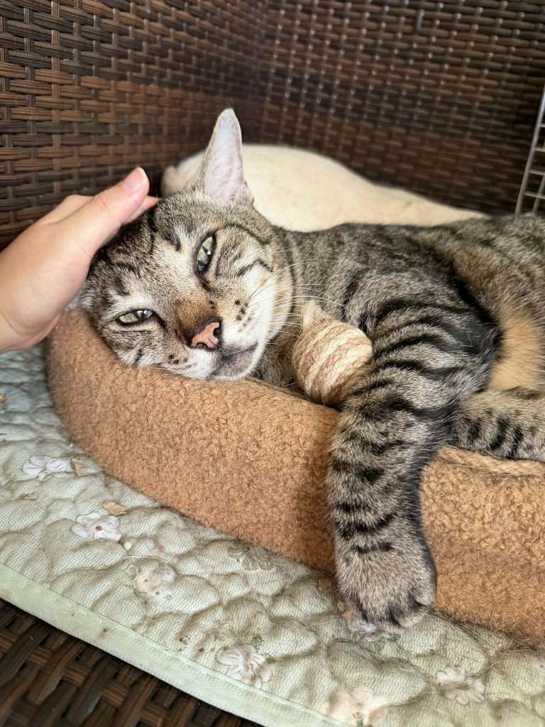 Frankie Bear was found laying in a drain,starving, emaciated and unable to move. He weighed a mere 3.2kg and was at the verge of needing a blood transfusion. Sweet Franke pulled through and is healthy now. He is a gentle giant with big voice and a easy going personality. He has a very calming nature. Frankie yearns for the company of adult humans and likes to stay close to his humans. Neutered, FIV/FELV NEGATIVE,vaccinated, dewormed, on revolution and litter trained. Potential adopters must mesh necessary areas of the house and keep him strictly indoors. CWS guidelines apply.