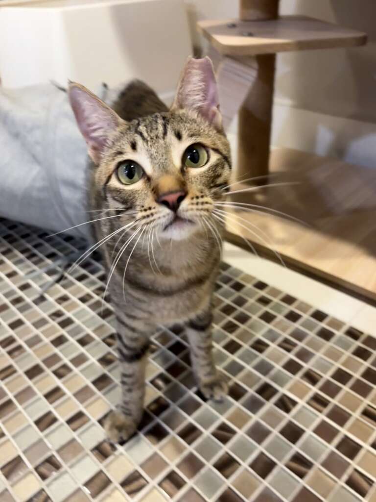 They’re affectionate in different ways: Donut brings the chill, Peanut brings the cheerful energy. They are prefered to be adopted together or Peanut on his own if you have a playtul resident cat!